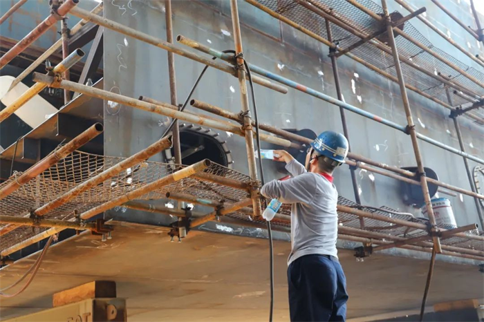 立秋不落雨,二十四只秋老虎。立秋第二天,蕪湖市氣象臺發(fā)布高溫紅色預(yù)警信號,秋老虎威力不減,40度高溫灼烤船廠大地,室外船體表面溫度高達60多度。蕪船人在烈日中踐行責(zé)任,在拼搏中展現(xiàn)擔當,面對酷暑高溫他們堅定必勝的信念、干勁十足,向著目標任務(wù)發(fā)起沖刺。