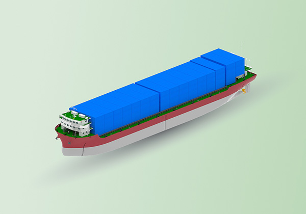 該船型設計獨具匠心,總長 119.98m,型寬 21.80m,型深 8.50m。在裝載能力方面表現(xiàn)出色,散貨裝載量可達15,000噸,標準集裝箱裝載量高達735TEU,總噸位 9500載重噸。